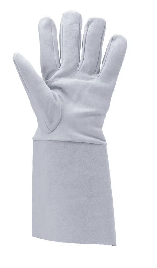 Cuir pleine fleur agneau, pouce rapporté, manchette de sécurité en croûte, longueur 15 cm. Grande souplesse, confort, dextérité, antistatique.